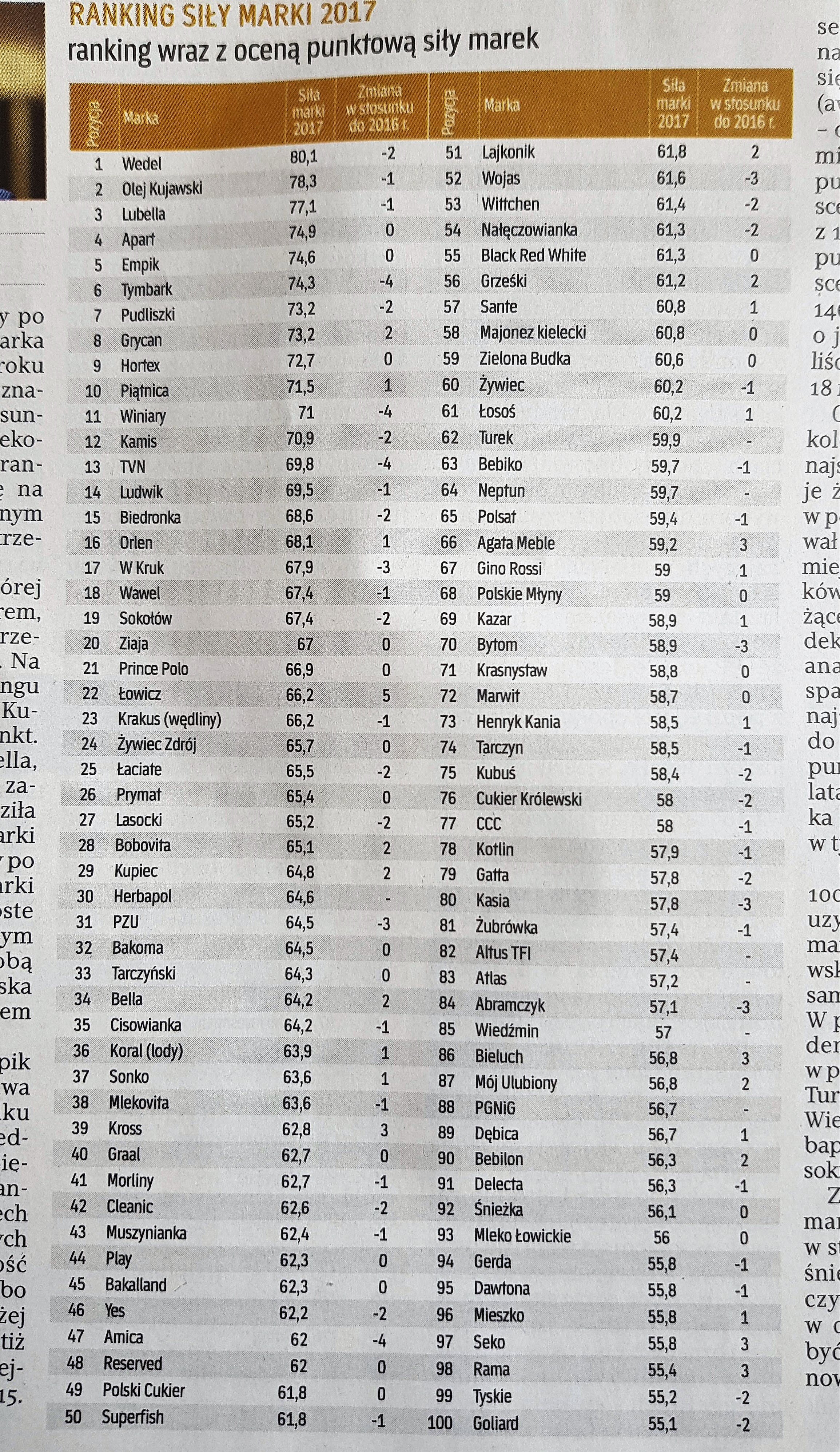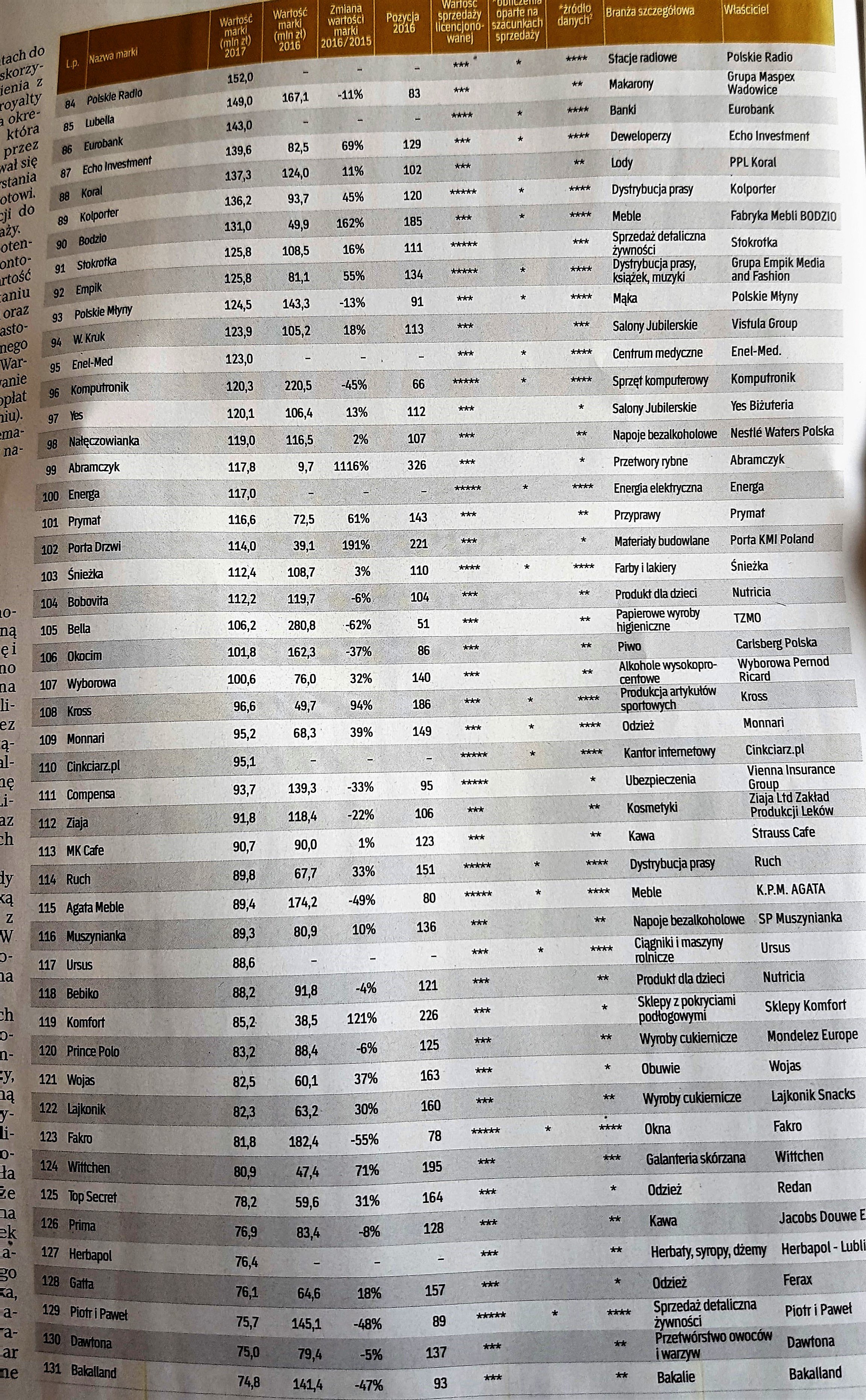 "Rzeczpospolita" published the "Ranking of the most valuable Polish brands" in their 14th edition.