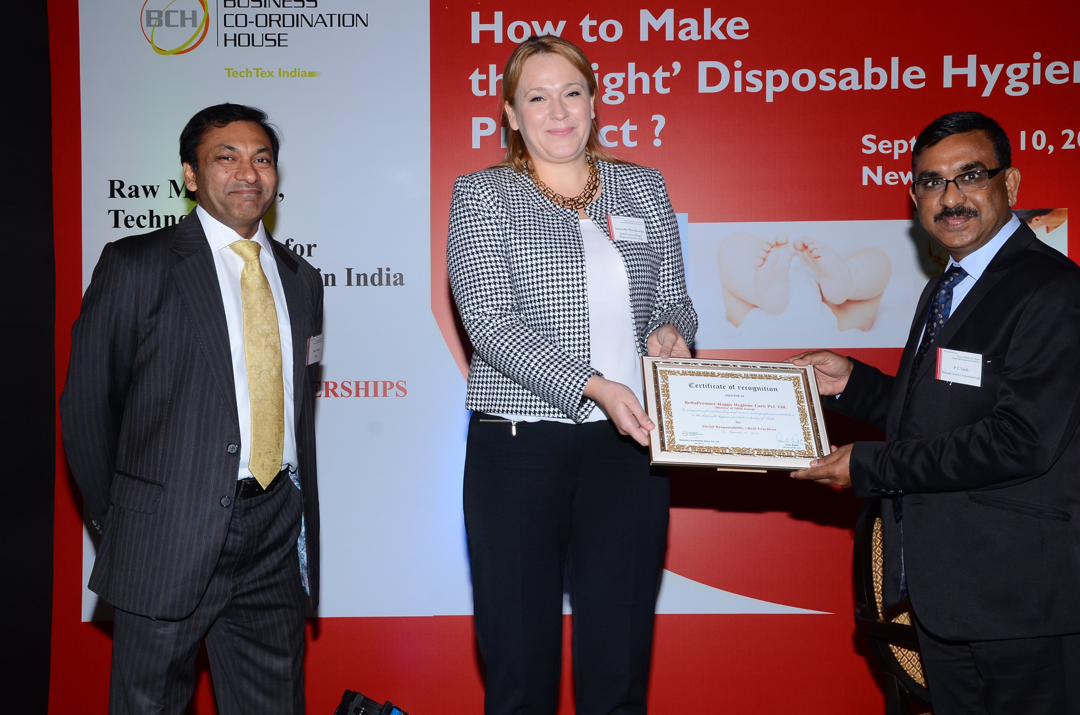 Large-scale activities within CSR are conducted in India as well. For implementing programme "Bella Training programme" in schools, BellaPremier Happy HygieneCare Ltd. received an award for "Best practices" from Business Co-ordination House. On behalf of our Indian company the award was picked up by Ms. Agnieszka Wronkowska - Sales&Marketing Director.