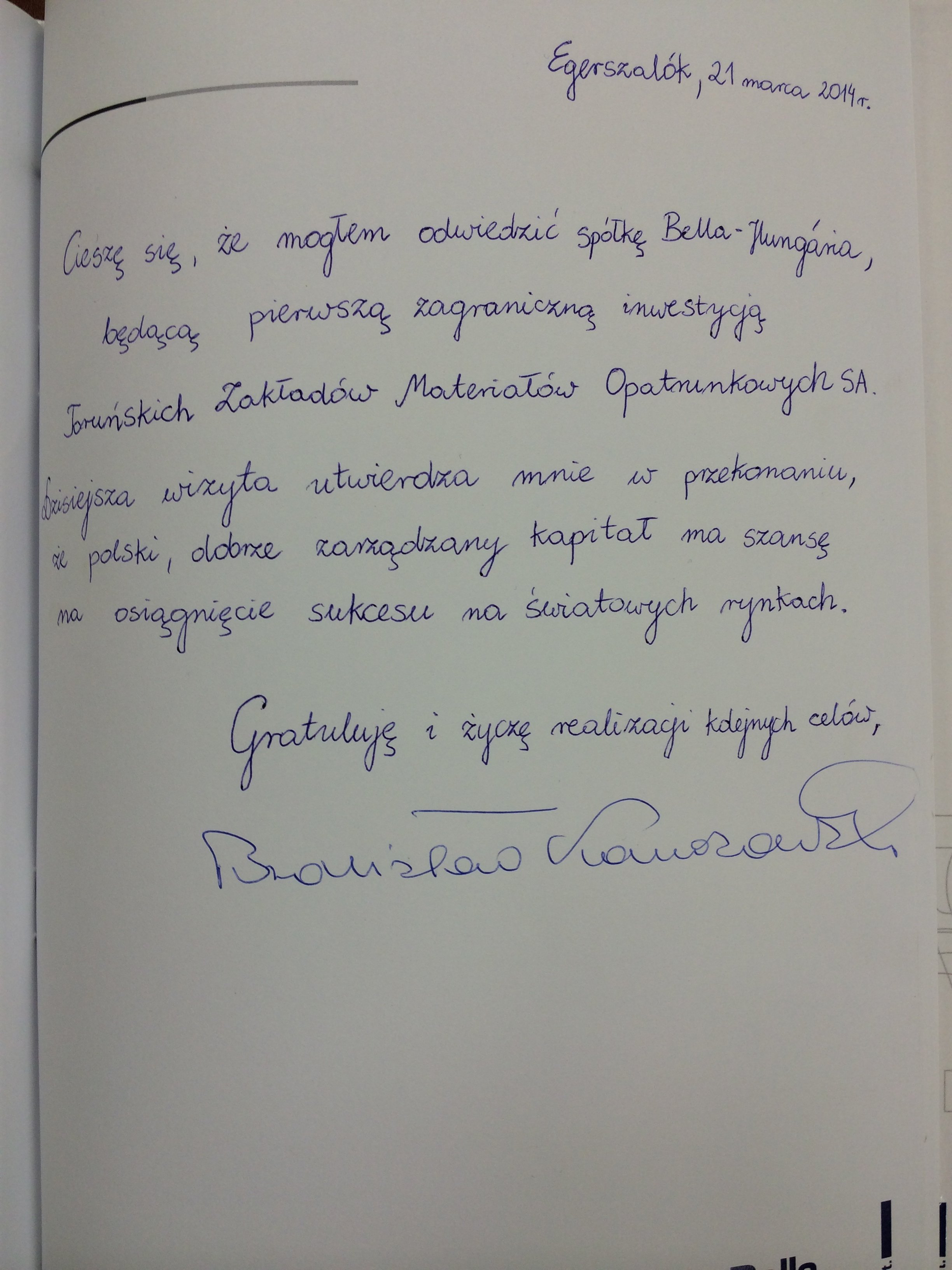 President of the Republic of Poland Bronislaw Komorowski paid an official visit to Bella Hungaria Ltd. on March 21st.